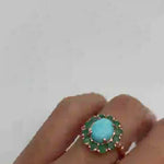 Victorian Ring, Natural Turquoise, Natural Emerald, Vintage Rings, Arizona Turquoise, December Birthstone, Solid Silver, Turquoise(1)