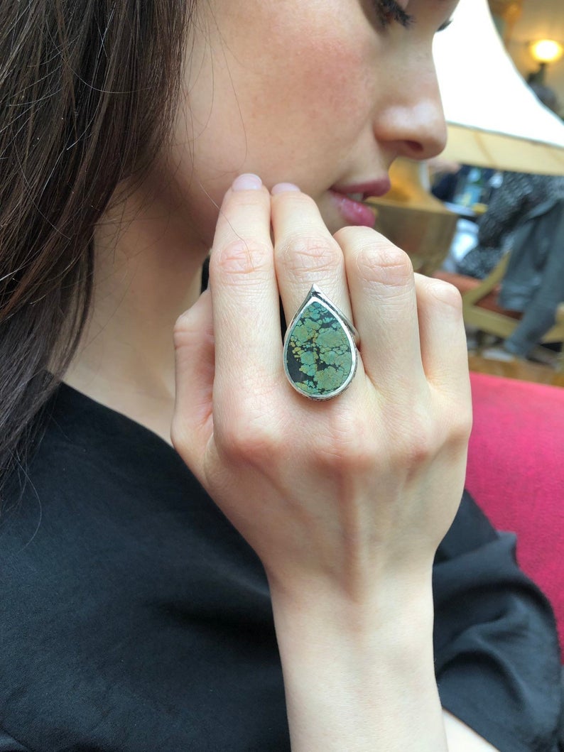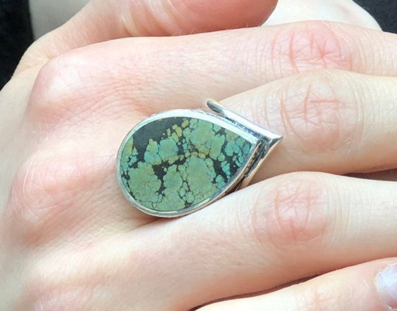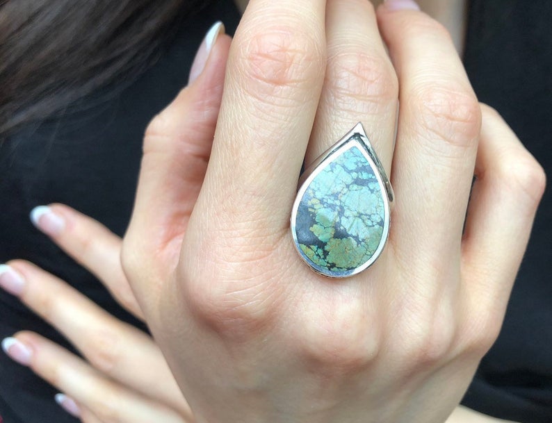 Turquoise Silver Ring - Teardrop Ring, Natural Turquoise Ring, Statement Turquoise Ring