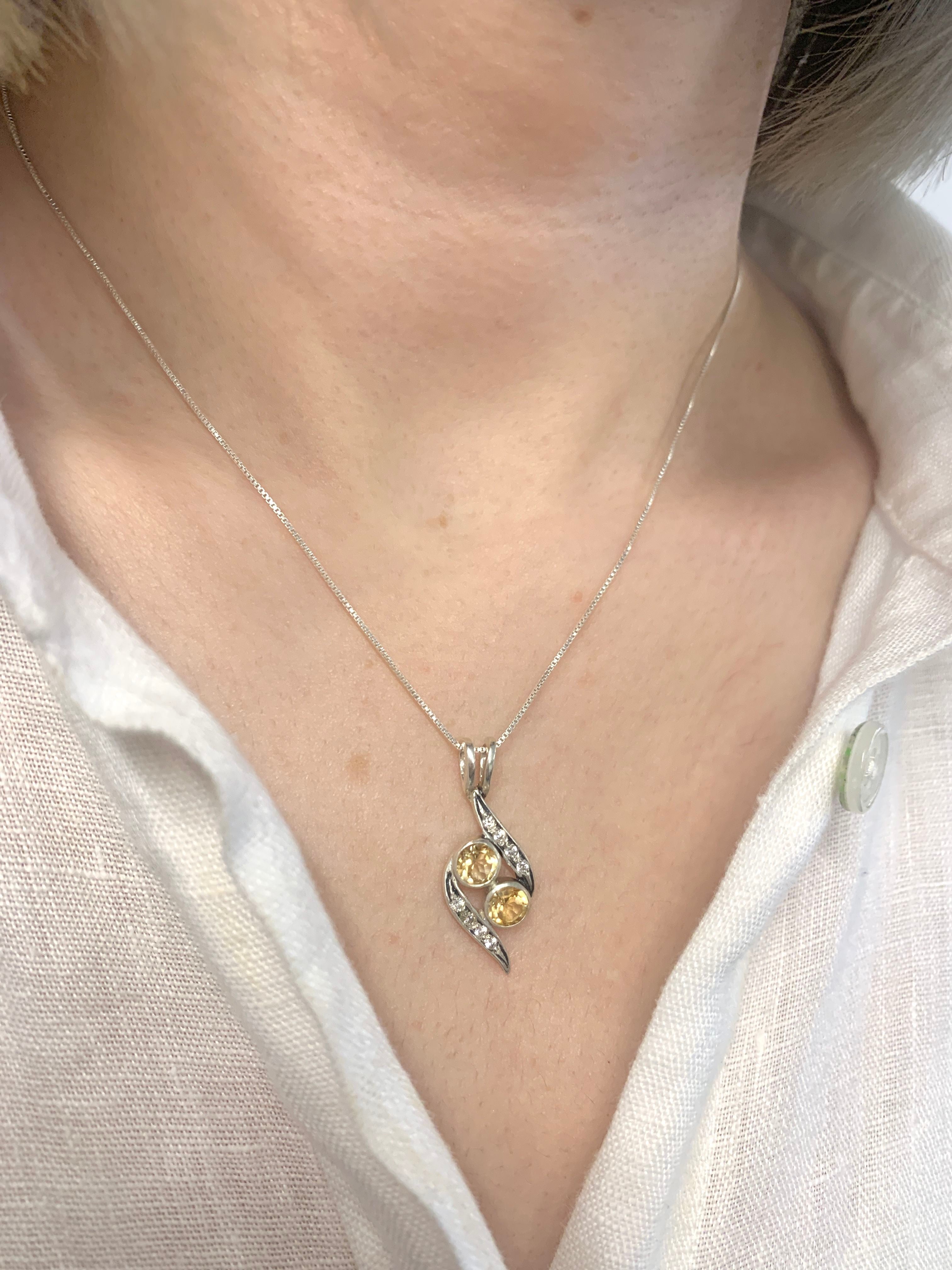 Two Stone Citrine Pendant set with Natural Citrine in a flawless diamond cut & clarity, at 5mm each (1.2 Cts all) with CZ Diamonds.