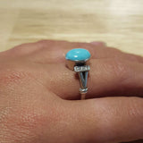 Turquoise Silver Ring set with a Natural Sleeping Beauty Turquoise in a cabochon cut and stunning natural blue color, at size 10x8mm (3 Cts) from Arizona.