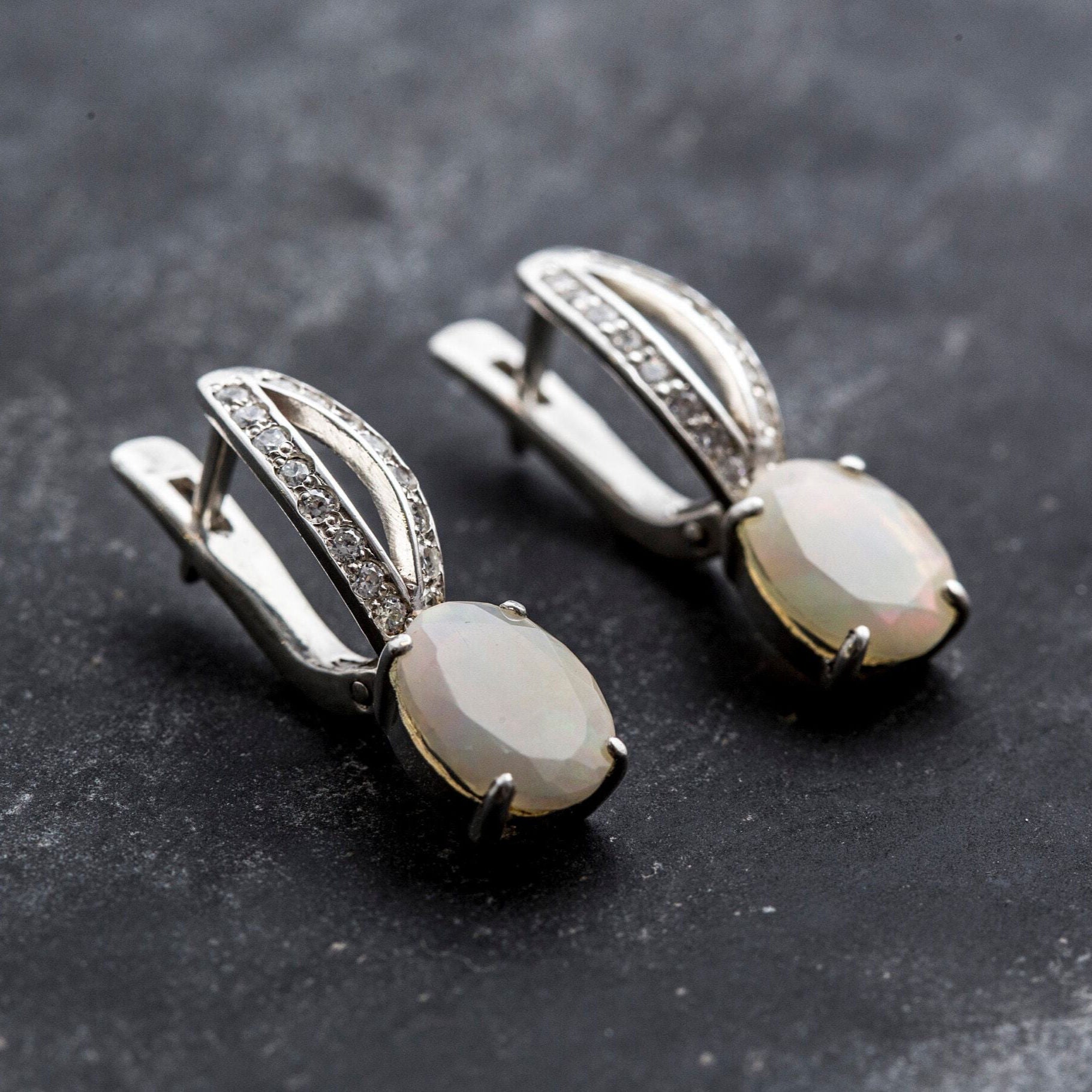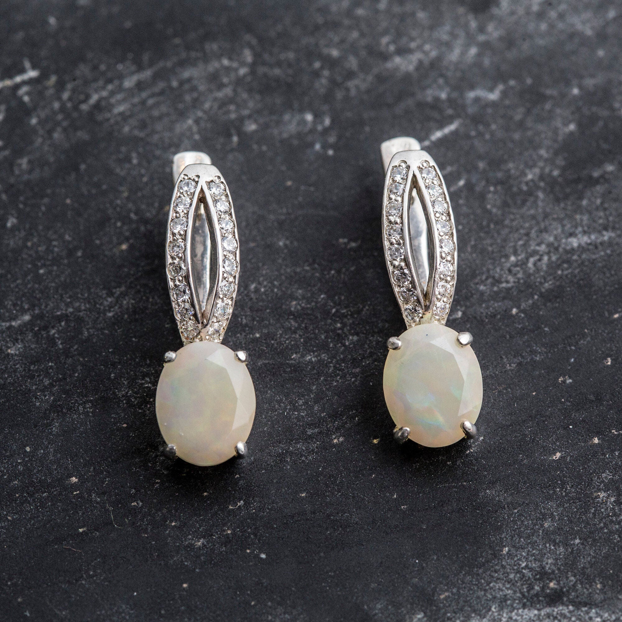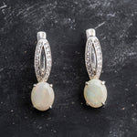 Drop Opal Earrings - White Oval Earrings - Long Vintage Earrings