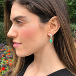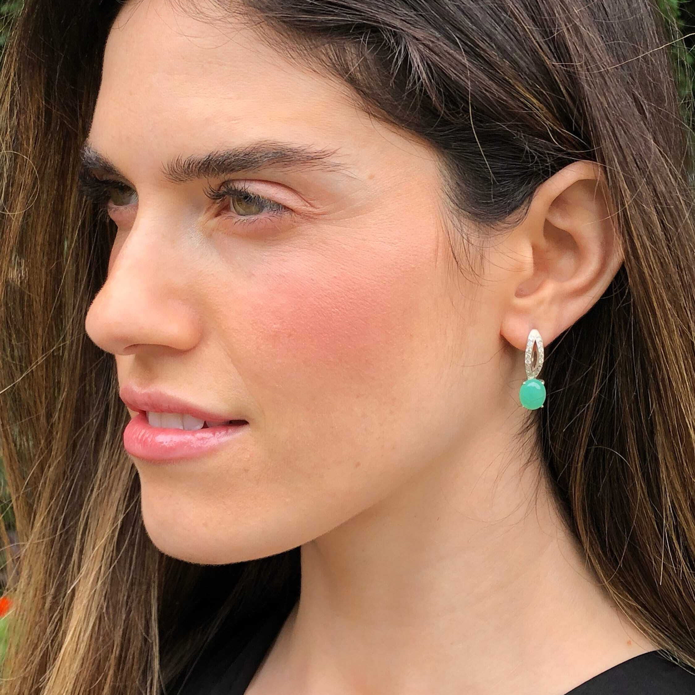 Drop Opal Earrings set with a Natural Ethiopian Opal - Fire Opal - in a diamond cut with natural fire patterns, at 10x8mm each (6 Cts a pair) sourced directly from the mines in Ethiopia with small CZ Diamonds.