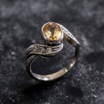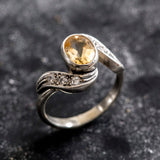 Colorful Gemstone Ring, Natural Citrine, Vintage Silver Rings, November Birthstone, Yellow Rings,