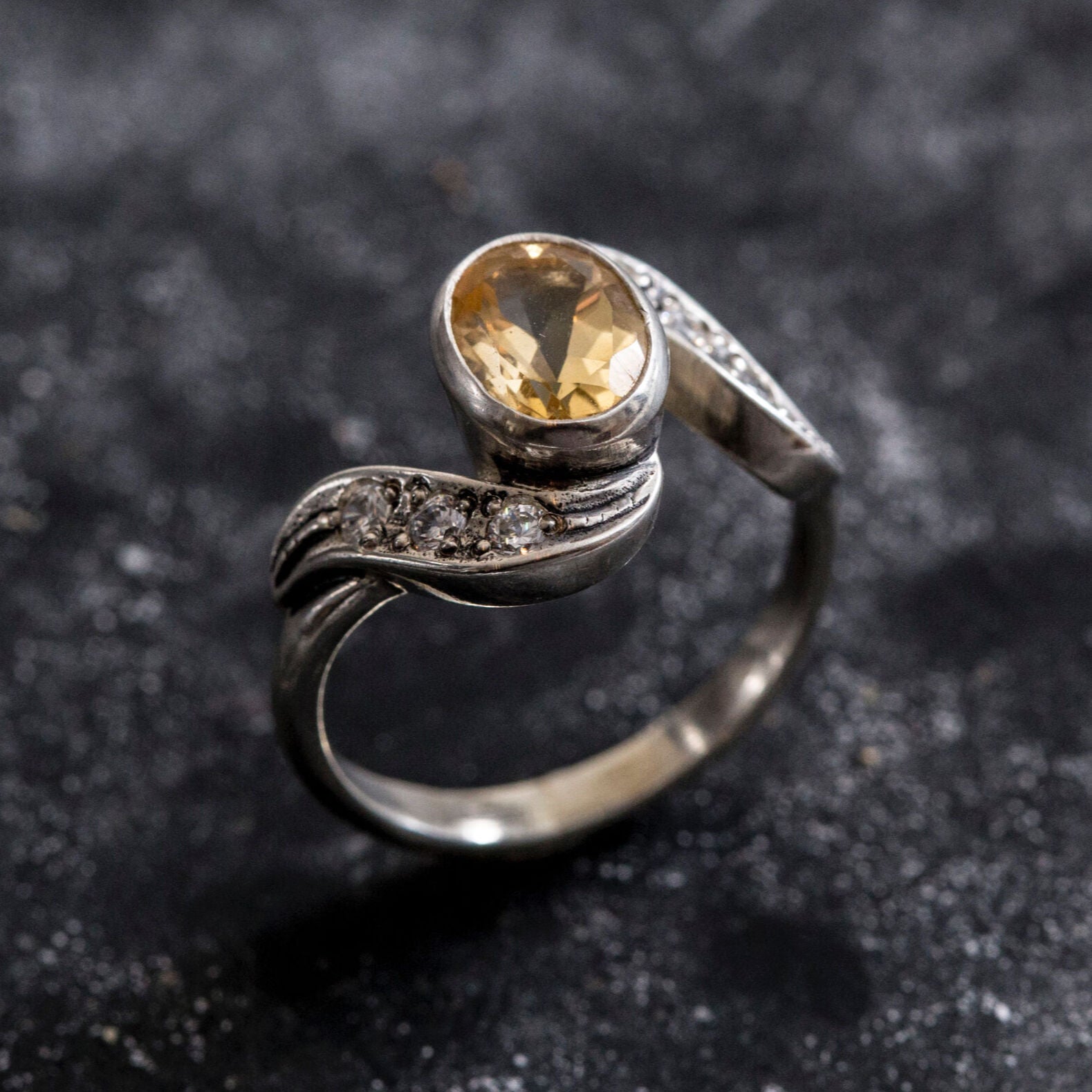 Citrine Ring - Yellow Vintage Ring - Citrine Bezel Ring