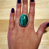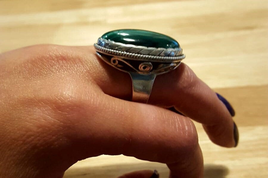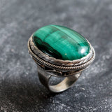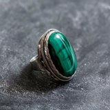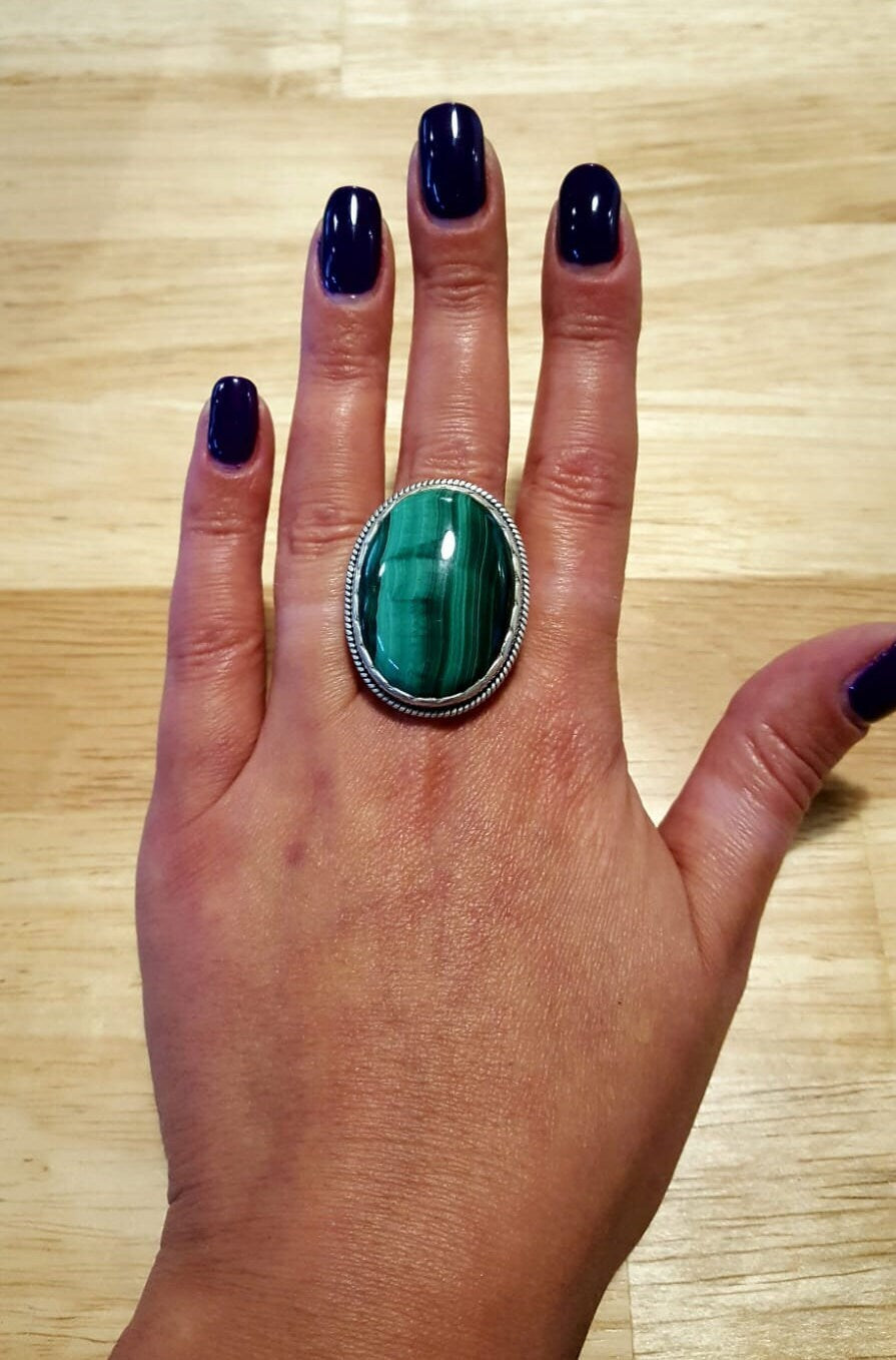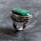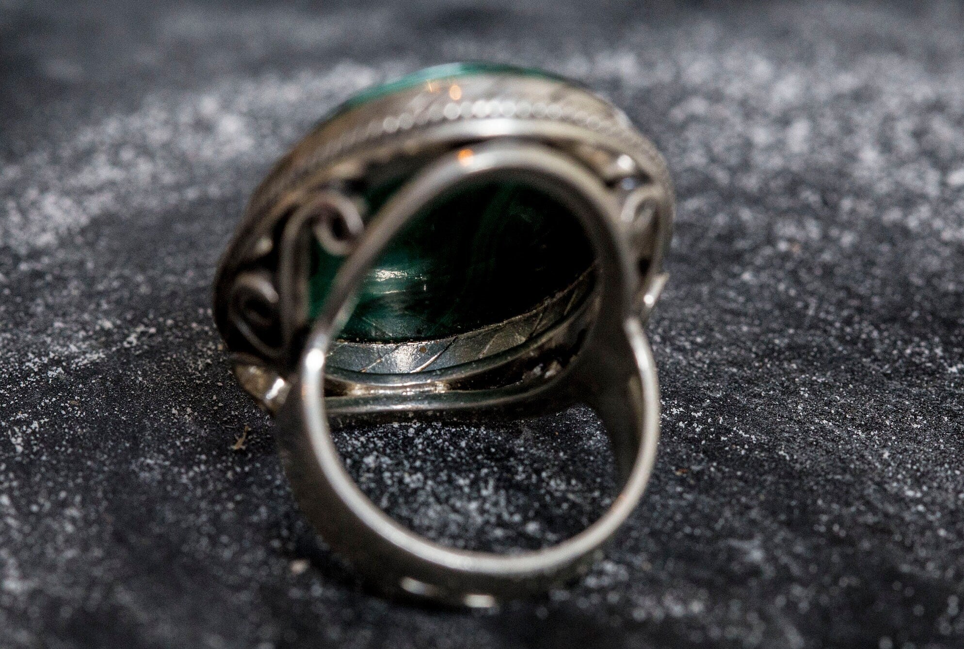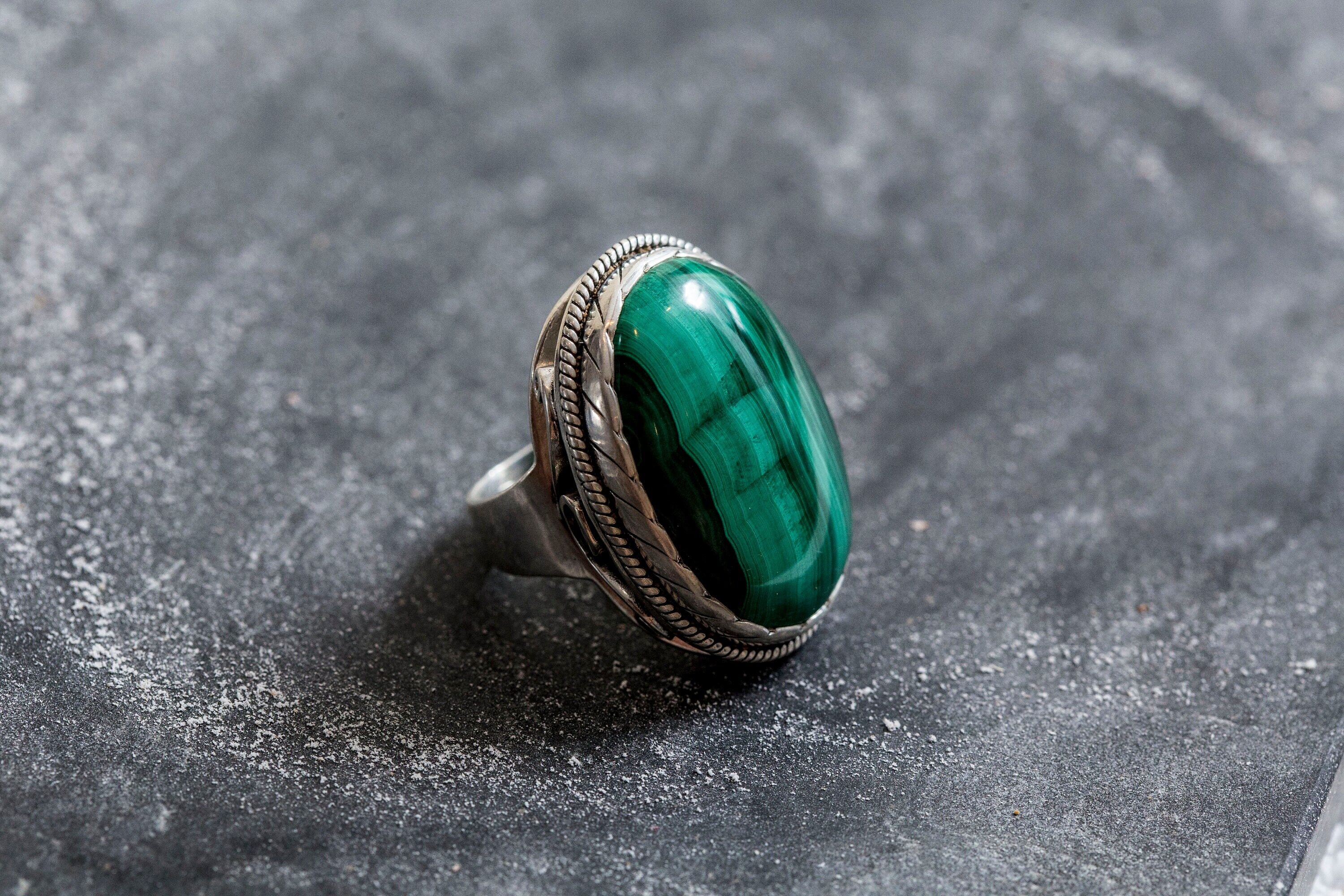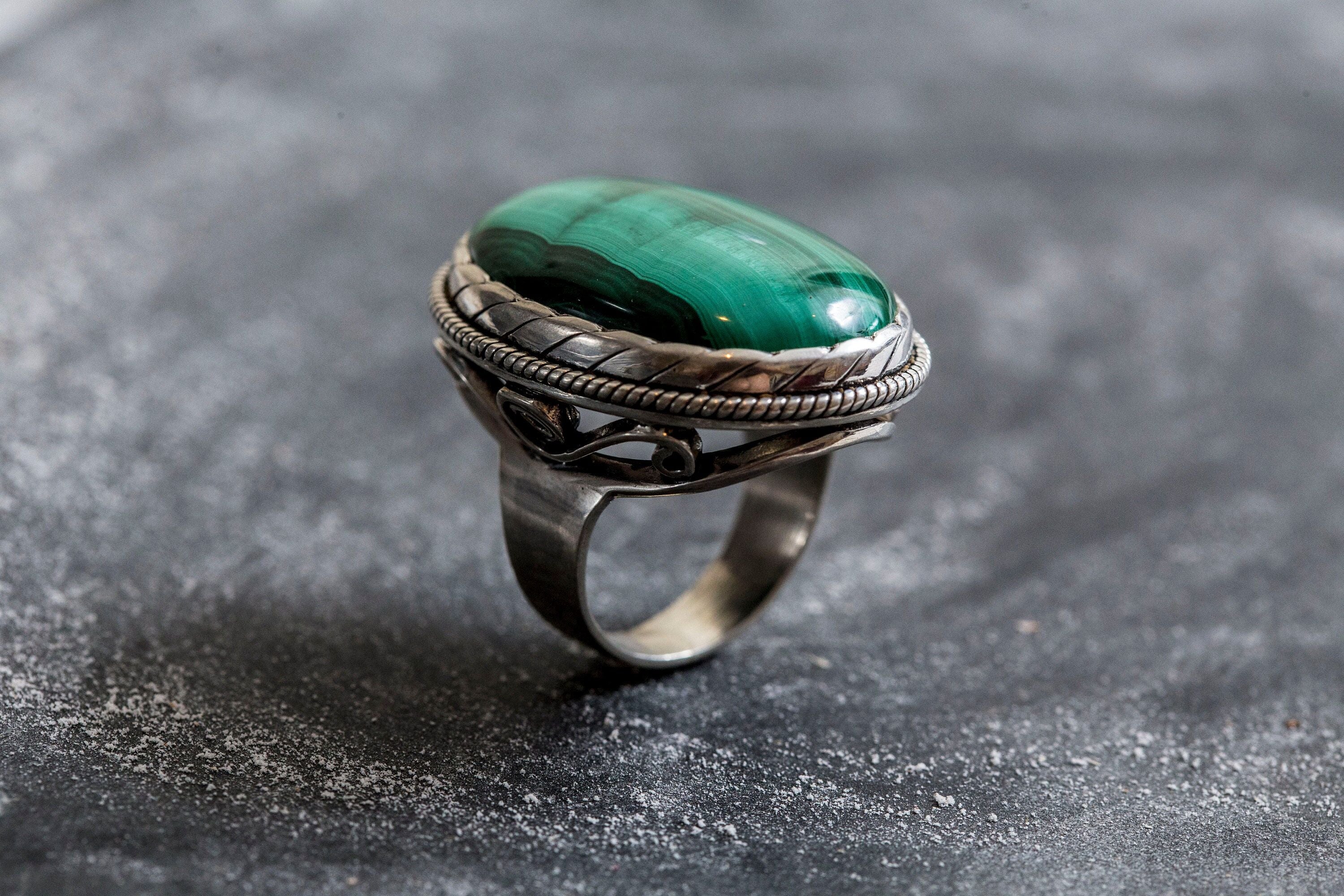 Very Big Malachite Ring, Natural Malachite, Vintage Rings, Large Stone, Natural Stone, Green Ring, Solid Silver, Antique Ring, Malachite