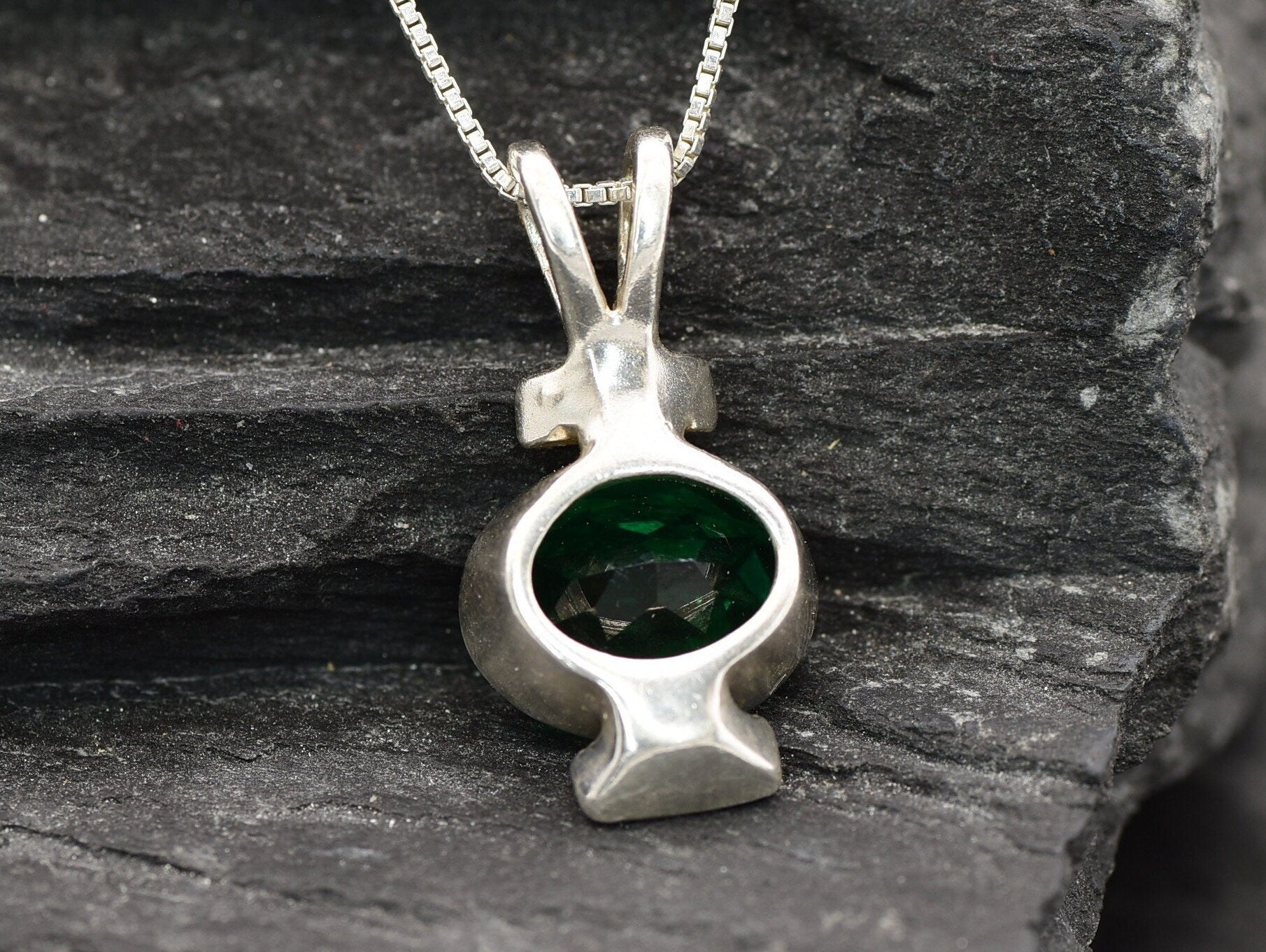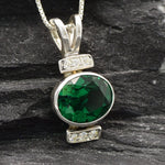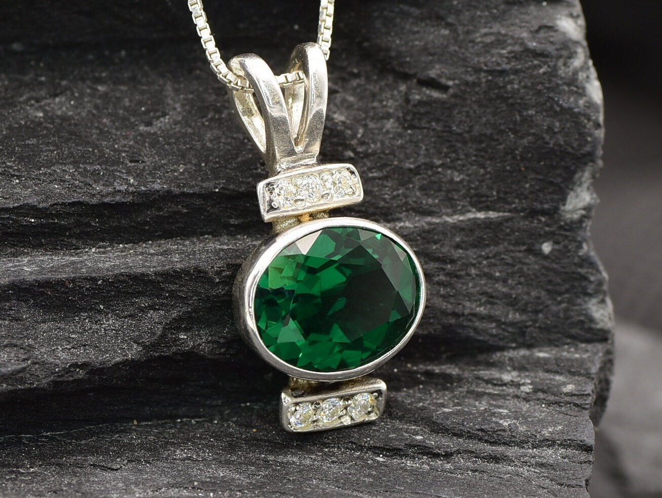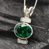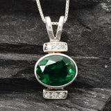 Emerald Pendant in 925 Sterling Silver, featuring a stunning Oval Created Green Emerald, perfect for birthdays and special occasions.