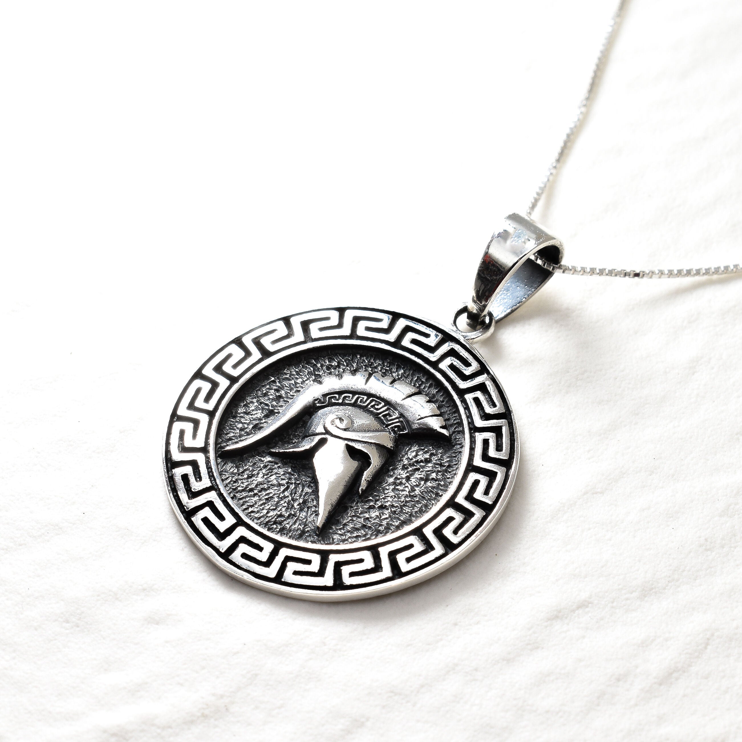 Handcrafted Warrior Helmet Pendant, Silver Spartan Necklace, Gladiator Pendant