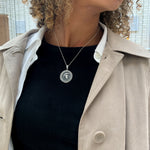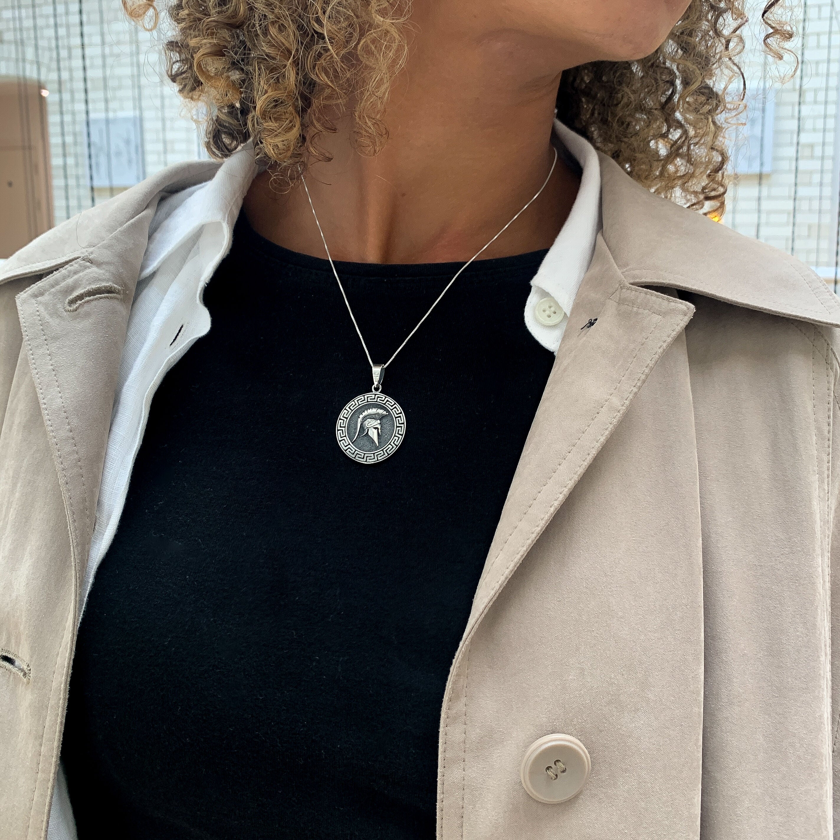 Warrior Helmet Pendant, Silver Spartan Necklace, Gladiator Pendant worn by model