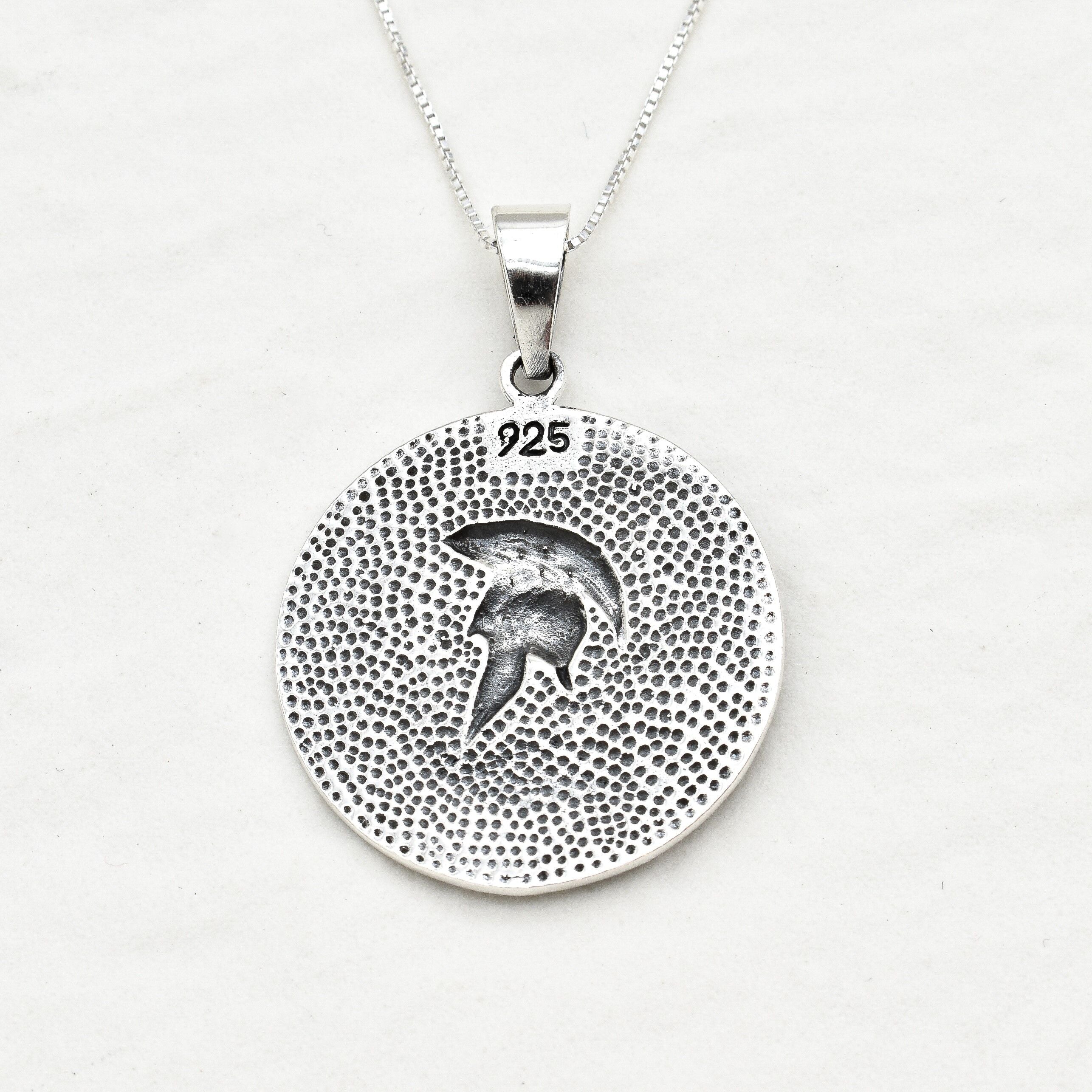 Warrior Helmet Pendant, Silver Spartan Necklace, Gladiator Pendant back view