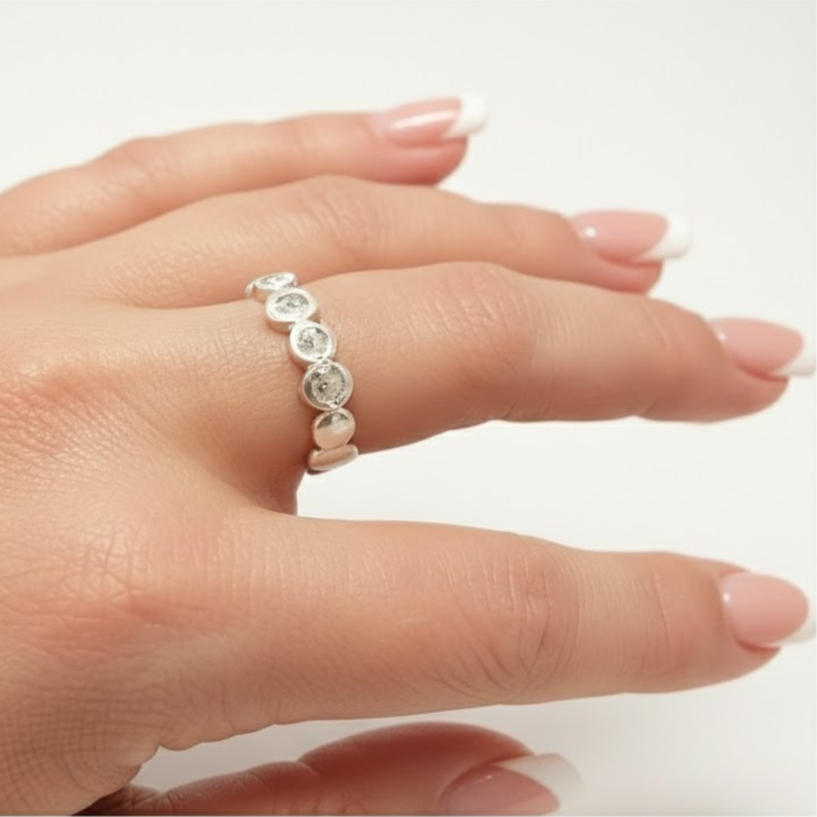 Stylish Diamond Eternity Band in White Gold Vermeil—A versatile dainty ring for everyday elegance and memorable gifting moments.