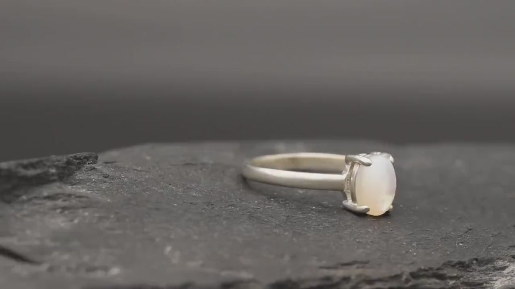 White Solitaire Ring, Mother of Pearl Ring, Shell of Pearl Ring, Dainty  Ring, Solitaire Ring, June Ring, Promise Ring, Solid Silver Ring