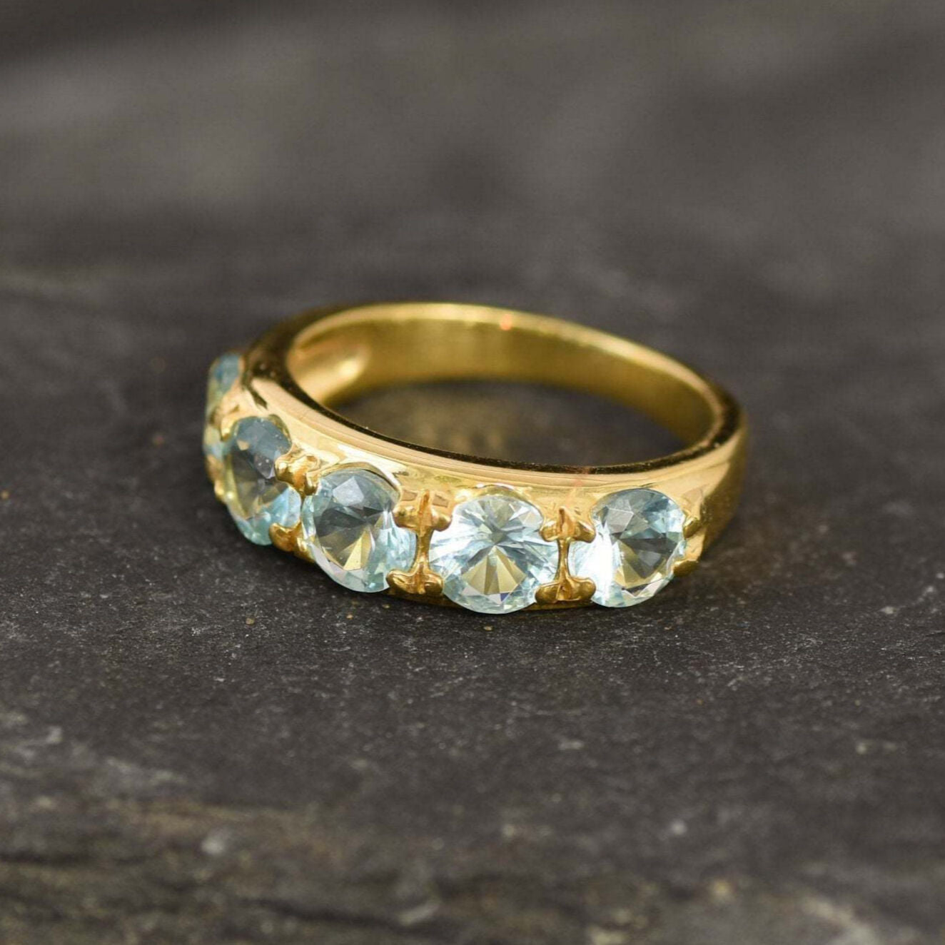 Wide Aquamarine Ring - Blue Eternity Band - Vintage Boho Band