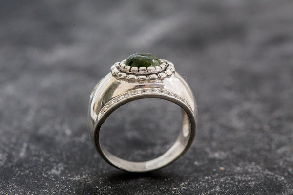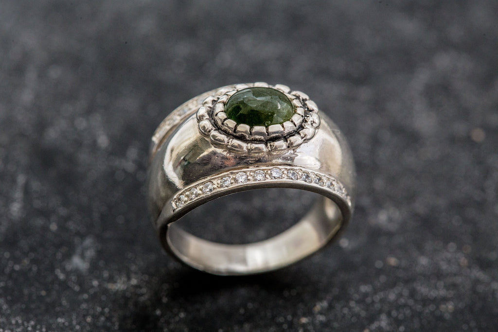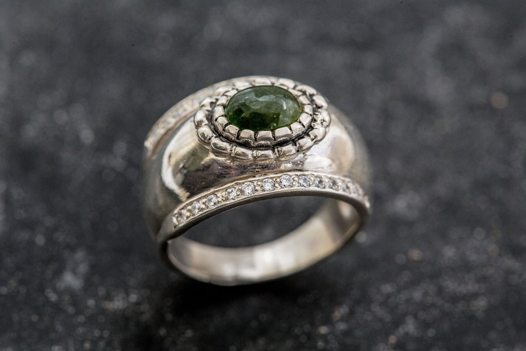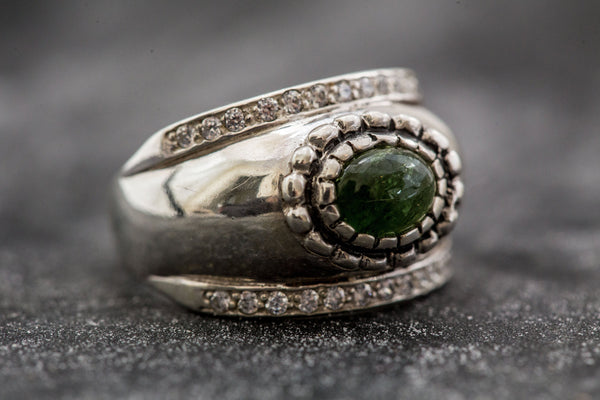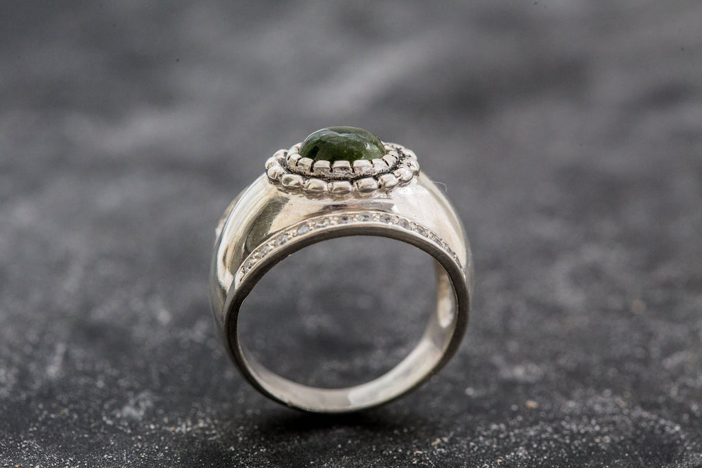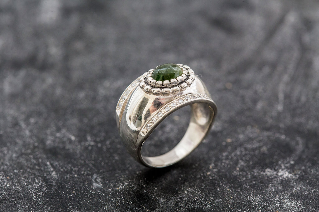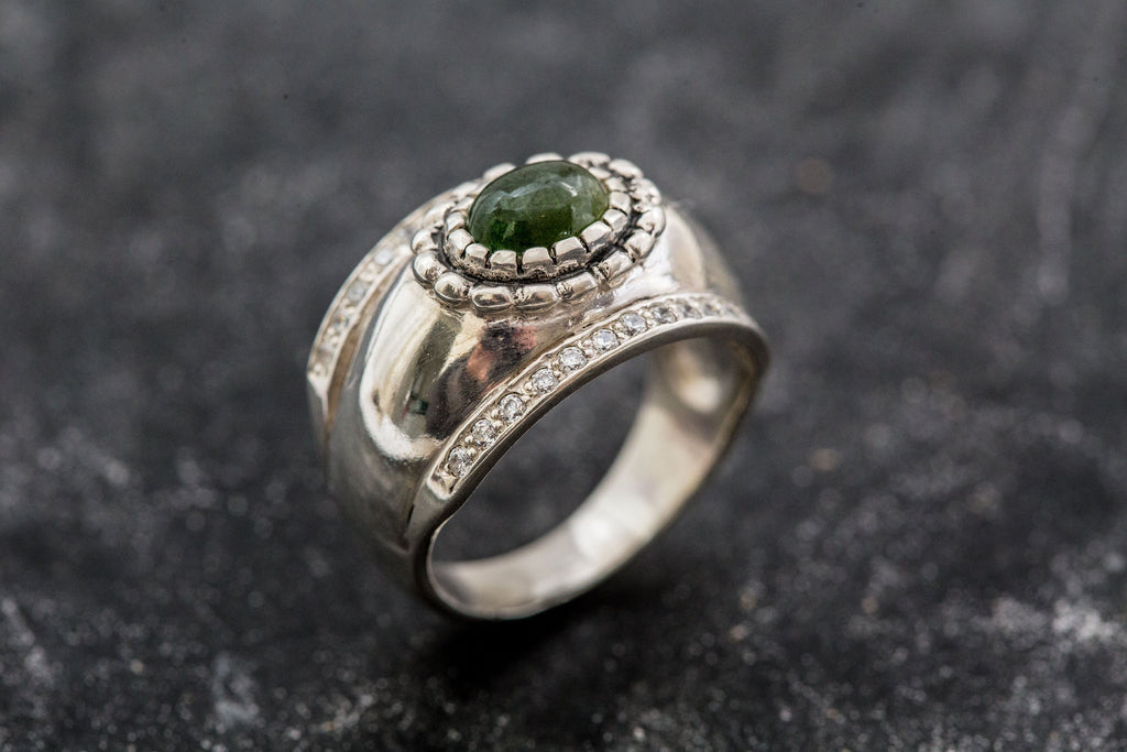 Green Tourmaline Ring - Silver Chunky Band - Wide Tourmaline Ring