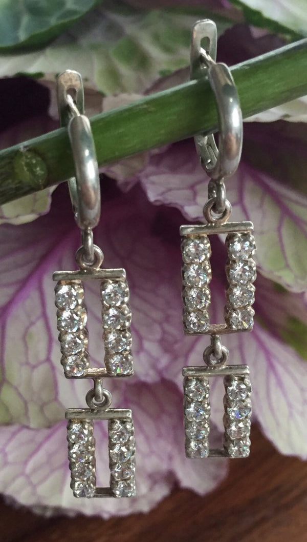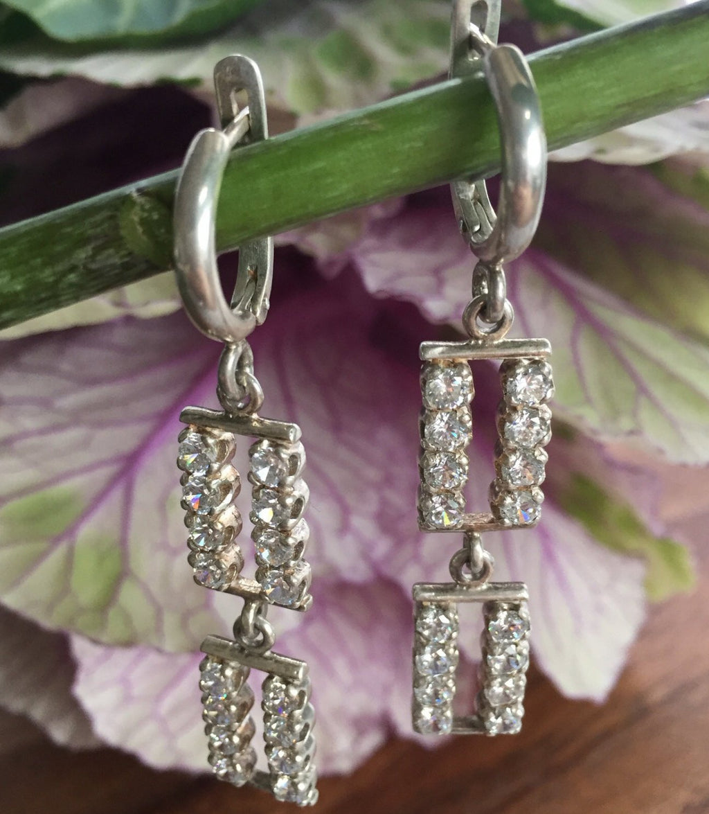 Zirconia Earrings, Bridal Earrings, Sterling Silver Earrings, Long Silver Earrings, Bridal, Bridal Jewelry