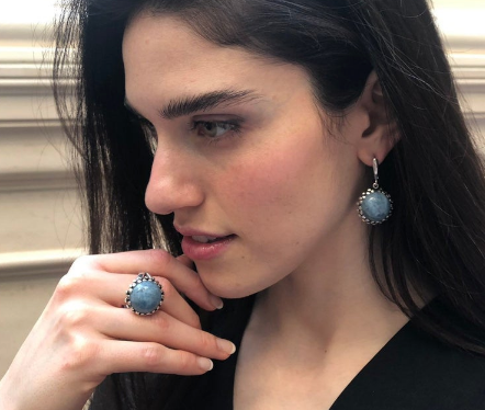 Aquamarine Victorian Necklace - Blue Gemstone Pendant - Aquamarine Halo Necklace